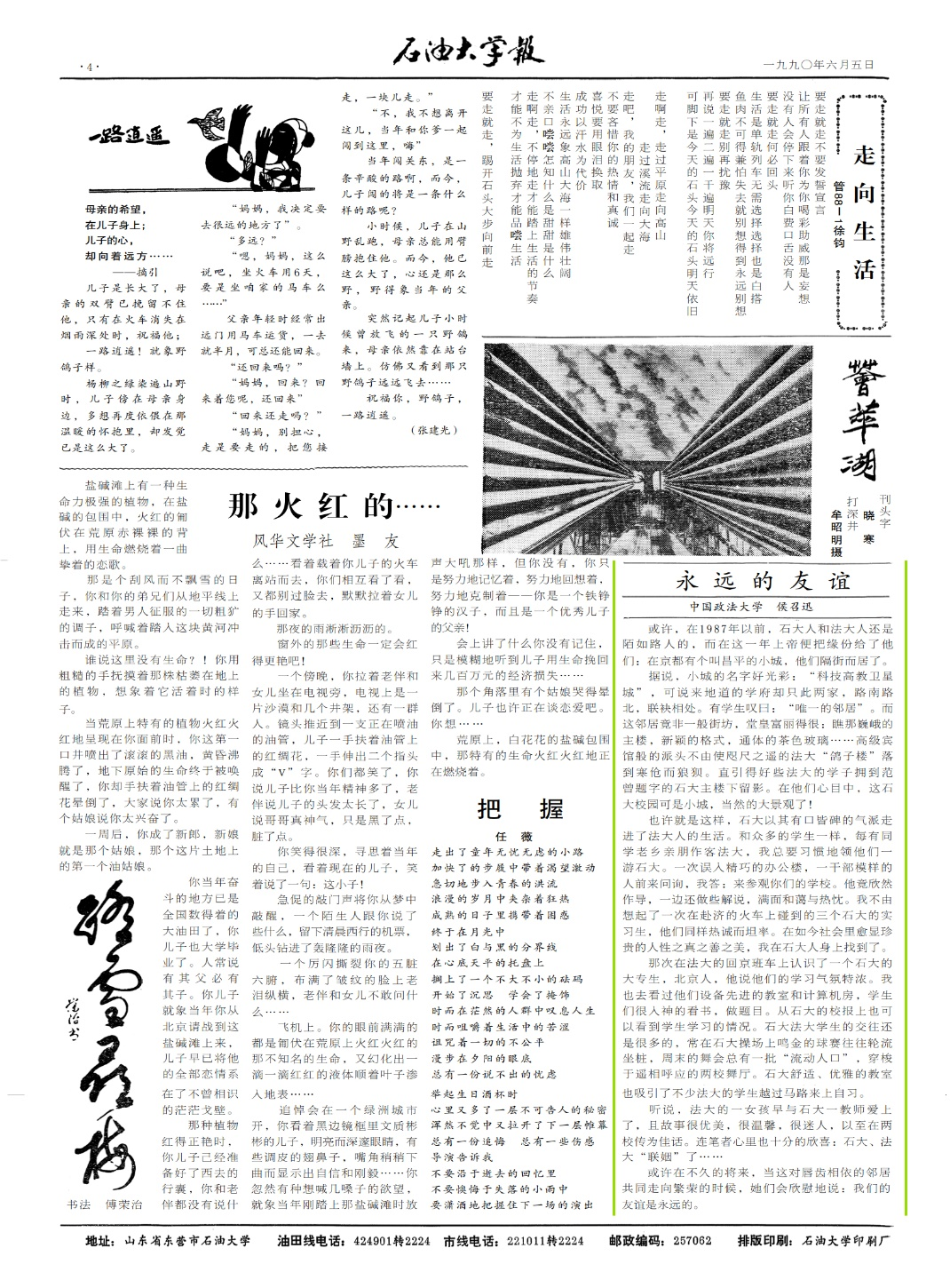 就是在查詢有些舊文作搶救式備份時(shí),偶然發(fā)現(xiàn)了上學(xué)期間在石油大學(xué)校報(bào)刊發(fā)的一篇小文章《永遠(yuǎn)的友誼》,此文早已隱入塵煙,忽然看到,也算驚喜。小文稚嫩卻不失真誠(chéng),真誠(chéng)勝于技巧,真誠(chéng)是道,是態(tài)度,是情懷,是出發(fā)點(diǎn)。真了必有誠(chéng),不真必?zé)o誠(chéng),真太難,誠(chéng)更難。有真有誠(chéng),事有何難,世有何難。求真求誠(chéng),任重道遠(yuǎn),時(shí)不我待,我輩有責(zé)。
