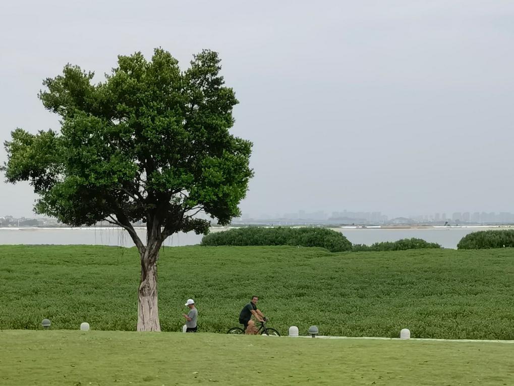 市民騎行經(jīng)過環(huán)東濱海旅游浪漫線紅樹林。新華社記者 秦宏 攝