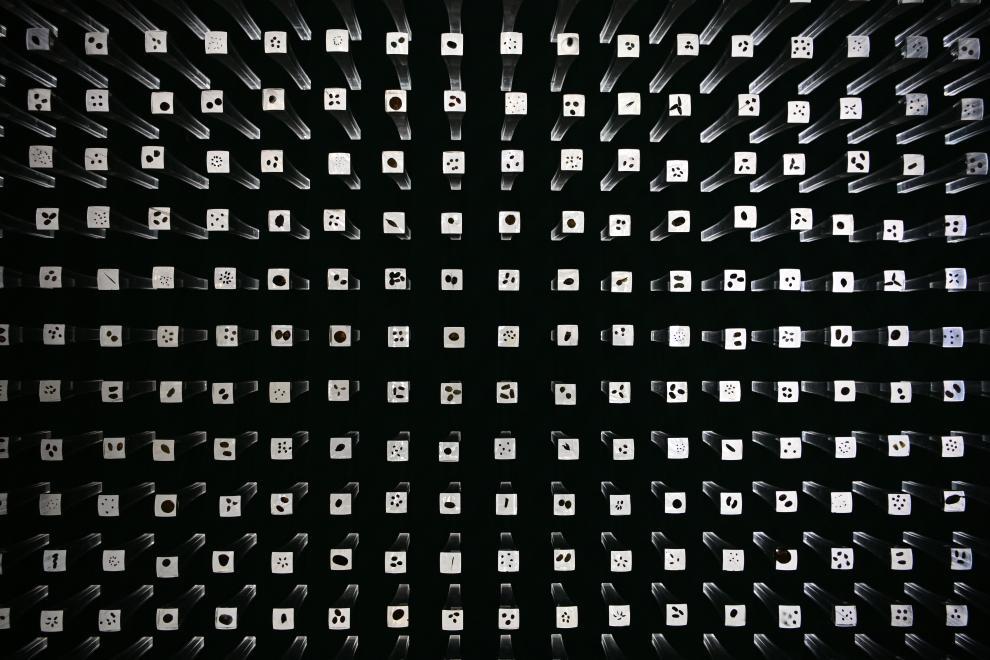 這是8月20日在種子博物館內(nèi)拍攝的亞克力柱種子展示墻。新華社記者辛悅衛(wèi) 攝