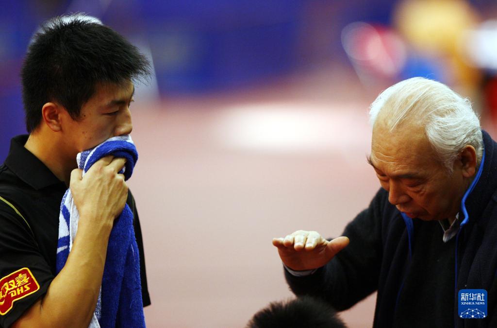 這是張燮林(右)在河北省正定乒乓球訓(xùn)練基地指導(dǎo)隊(duì)員訓(xùn)練(資料照片)。新華社記者 張小軍 攝