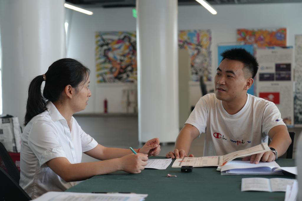 成都市成華區(qū)行政審批局在項目現(xiàn)場設(shè)立“流動審批服務點”,為商戶辦理行政審批手續(xù)。(詹妮 攝)
