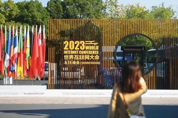 2023年11月7日拍攝的世界互聯(lián)網(wǎng)大會烏鎮(zhèn)峰會迎賓入口