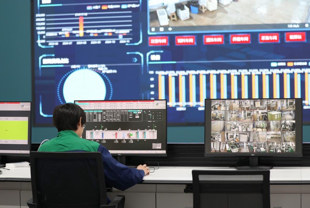 11月24日,一名工作人員在中繭新科智慧養(yǎng)殖大數(shù)據(jù)中心中控臺工作。新華社記者王婧嬙 攝