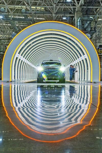 重慶市兩江新區(qū)一家汽車工廠內,工作人員在調試即將下線的整車。新華社發(fā)