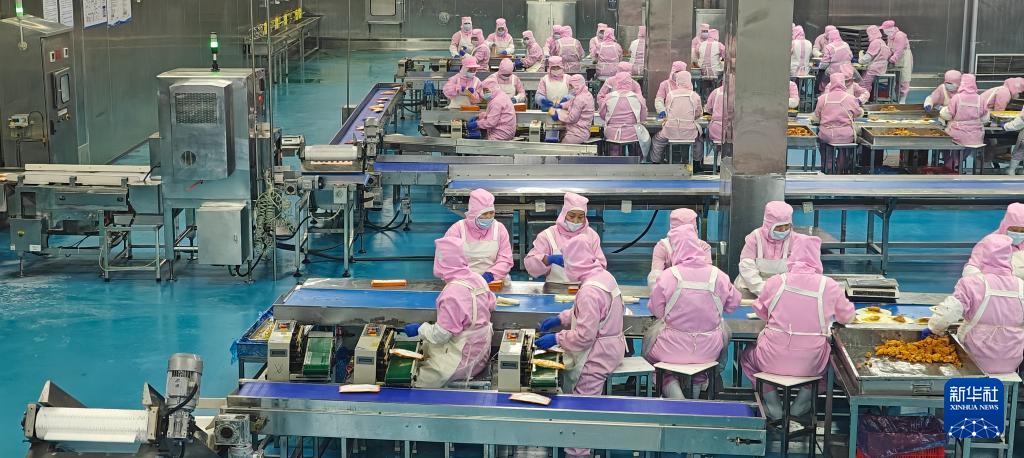 12月26日,工人在河南漯河的河南御江食品股份有限公司的生產(chǎn)線上工作。新華社記者 劉力航 攝