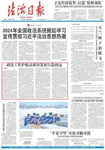 2024年1月,習(xí)近平總書記對(duì)政法工作作出重要指示強(qiáng)調(diào),堅(jiān)持黨的絕對(duì)領(lǐng)導(dǎo),忠誠(chéng)履職、擔(dān)當(dāng)作為,以政法工作現(xiàn)代化支撐和服務(wù)中國(guó)式現(xiàn)代化,為全面推進(jìn)強(qiáng)國(guó)建設(shè)、民族復(fù)興偉業(yè)提供堅(jiān)強(qiáng)安全保障。一年來(lái),各級(jí)政法機(jī)關(guān)堅(jiān)持以習(xí)近平新時(shí)代中國(guó)特色社會(huì)主義思想為指導(dǎo),深入貫徹落實(shí)習(xí)近平法治思想和總體國(guó)家安全觀,把習(xí)近平總書記的重要指示精神轉(zhuǎn)化為建設(shè)更高水平平安中國(guó)、法治中國(guó)的實(shí)際行動(dòng),護(hù)航高質(zhì)量發(fā)展行穩(wěn)致遠(yuǎn)。