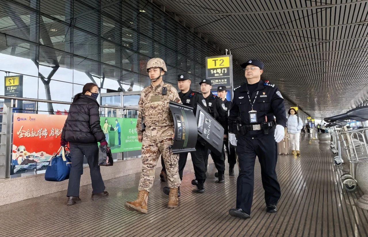 圖為廳機場公安局民警聯(lián)合武警開展巡邏。