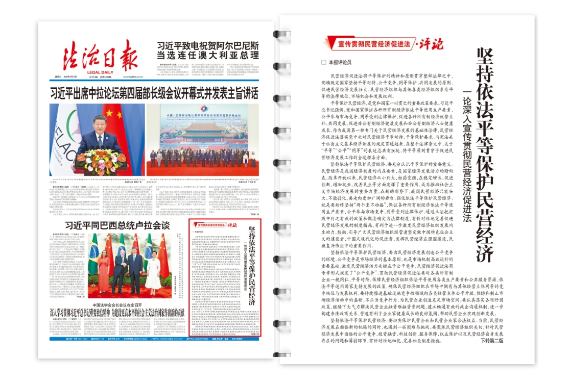 平等保護(hù)民營(yíng)經(jīng)濟(jì),是黨和國(guó)家一以貫之的重要政策要求。習(xí)近平總書記強(qiáng)調(diào),黨和國(guó)家保證各種所有制經(jīng)濟(jì)依法平等使用生產(chǎn)要素、公平參與市場(chǎng)競(jìng)爭(zhēng)、同等受到法律保護(hù),促進(jìn)各種所有制經(jīng)濟(jì)優(yōu)勢(shì)互補(bǔ)、共同發(fā)展,促進(jìn)非公有制經(jīng)濟(jì)健康發(fā)展和非公有制經(jīng)濟(jì)人士健康成長(zhǎng)。作為我國(guó)第一部專門關(guān)于民營(yíng)經(jīng)濟(jì)發(fā)展的基礎(chǔ)性法律,民營(yíng)經(jīng)濟(jì)促進(jìn)法落實(shí)黨中央對(duì)民營(yíng)經(jīng)濟(jì)平等對(duì)待、平等保護(hù)要求,與憲法關(guān)于社會(huì)主義基本經(jīng)濟(jì)制度的規(guī)定貫通起來,在整個(gè)法律條文中,關(guān)于“平等”“公平”“同等”的表述總共有26處,將平等原則貫穿于促進(jìn)民營(yíng)經(jīng)濟(jì)發(fā)展工作的全過程各方面。