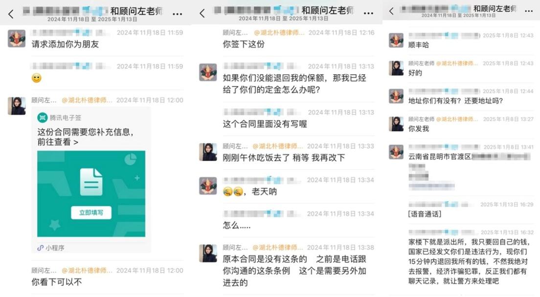 2024年12月,江西客戶S女士在網(wǎng)上看到一則“代理退?!钡膹V告,聲稱“全額退保,不成功不收費(fèi)”。因當(dāng)時經(jīng)濟(jì)壓力較大,并且缺乏對黑產(chǎn)中介的了解,S女士接觸了該所謂的“專業(yè)代理機(jī)構(gòu)”。在對方的誘導(dǎo)下,客戶以“銷售誤導(dǎo)”等虛假理由投訴保險公司,要求全額退保,同時還向?qū)Ψ街Ц读?800元作為“定金”。然而后續(xù)幾天,S女士始終沒有等到對方的消息。