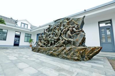 青口十八勇士紀念館內,十八勇士作為主題的雕塑。連云港市贛榆區(qū)委宣傳部供圖
