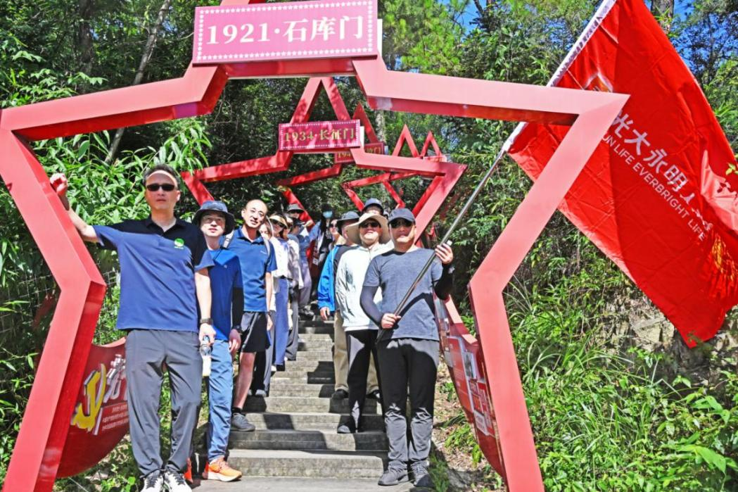 7月5日,在“7.8全國保險公眾宣傳日”來臨之際,光大永明人壽寧波分公司組織全體員工在東錢湖鎮(zhèn)高錢村新時代紅色黨建公園開展紅色傳承健步走活動。