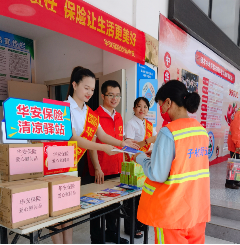 在廣西欽州白水塘社區(qū),華安保險(xiǎn)的工作人員在開(kāi)展“清涼驛站”活動(dòng)慰問(wèn)環(huán)衛(wèi)工人的同時(shí),也向往來(lái)群眾開(kāi)展防范非法金融活動(dòng)宣傳;界首支公司在職場(chǎng)外設(shè)置了“清涼驛站”,連續(xù)多日為環(huán)衛(wèi)工人送上飲品、藥品和毛巾等防暑降溫物資;在湖北襄陽(yáng),工作人員前往襄州區(qū)西灣社區(qū)紅色驛站,把“清涼驛站”設(shè)在“紅色驛站”旁,一邊帶領(lǐng)員工開(kāi)展紅色教育,一邊走進(jìn)社區(qū)開(kāi)展保險(xiǎn)宣傳,將紅色文化與保險(xiǎn)互助理念相融合;在云南曲靖,華安保險(xiǎn)的員工參觀紅軍博物館重溫入黨誓詞,并在三百戶營(yíng)村廣場(chǎng)組織員工和村民開(kāi)展長(zhǎng)征精神與保險(xiǎn)知識(shí)有獎(jiǎng)問(wèn)答活動(dòng);在合肥蜀山區(qū)大溪地商業(yè)廣場(chǎng),華安保險(xiǎn)以“納涼+公益咨詢”的創(chuàng)新形式開(kāi)展宣傳,為往來(lái)客戶送去納涼神器同時(shí),也把更多金融提醒向公眾進(jìn)行宣傳;7月7日下午,華安保險(xiǎn)湖南分公司在長(zhǎng)沙東方悅鄰商業(yè)廣場(chǎng)設(shè)立宣傳展臺(tái),工作人員開(kāi)展夏季用電安全知識(shí)有獎(jiǎng)測(cè)試,并向過(guò)往市民普及保險(xiǎn)知識(shí)、反欺詐技巧,同時(shí)為外賣(mài)和快遞小哥贈(zèng)送消暑飲用水。