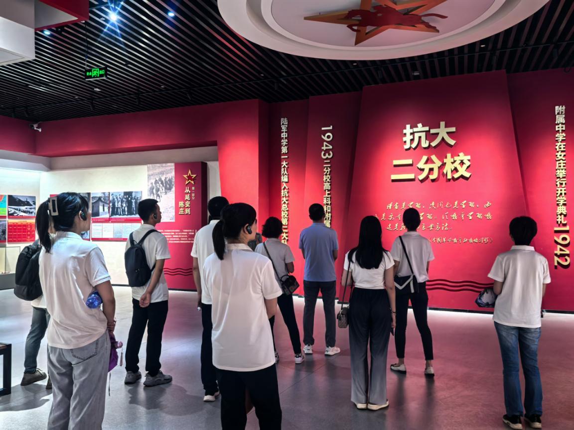 在陳列館,黨員們?cè)谥v解員引導(dǎo)下,透過(guò)賀龍?jiān)獛浭褂眠^(guò)的軍用地圖、繳獲武器及作戰(zhàn)沙盤,結(jié)合抗大二分校史料,重溫1939年八路軍120師在賀龍指揮下取得的陳莊殲滅戰(zhàn)重大勝利——這場(chǎng)殲敵1380余人的戰(zhàn)役,被譽(yù)為相持階段八路軍一次性殲敵最多的“模范殲滅戰(zhàn)”。大家深刻感悟了晉察冀邊區(qū)在持久抗戰(zhàn)中的戰(zhàn)略支撐作用和先輩們的革命精神。
