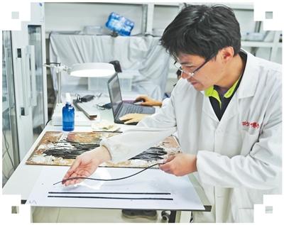 簡(jiǎn)牘發(fā)掘、保護(hù)和修復(fù)是一場(chǎng)與時(shí)間的賽跑。“剛出土的竹簡(jiǎn)軟得像面條,非常脆弱,接觸空氣后極易氧化變黑,可能導(dǎo)致文字瞬間消失?!笔Y魯敬說(shuō),在龍會(huì)河楚墓發(fā)掘中,他們采用“整體提取法”:以薄塑料板作“手術(shù)刀”,木托板為“擔(dān)架”,將整堆簡(jiǎn)牘托起,并快速送往荊州文物保護(hù)中心。