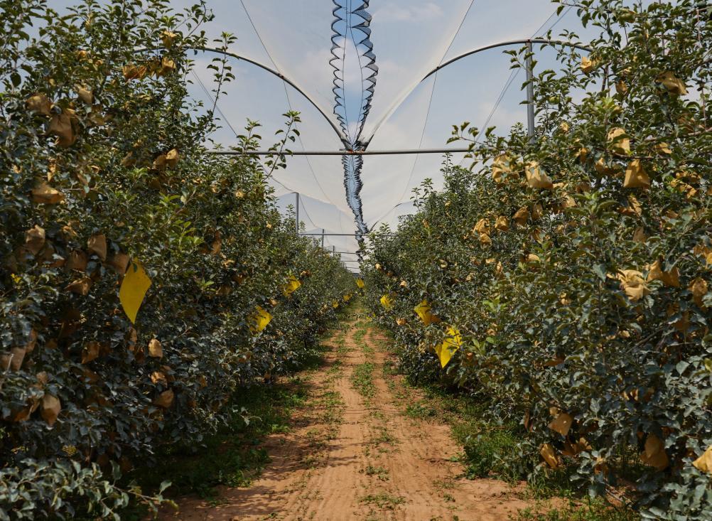 走進阿寺村的果園,濃濃的“技術(shù)范兒”撲面而來。在果農(nóng)李亞民的矮化密植新式果園里,水肥一體化灌溉設(shè)施貫穿田間,防雹網(wǎng)在陽光下折射出細碎的銀光。