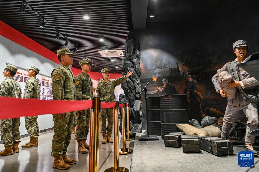 陸軍第73集團(tuán)軍某旅夜襲陽明堡“戰(zhàn)斗模范連”戰(zhàn)士在連史館學(xué)習(xí)連隊(duì)歷史 (2023年12月2日攝)。新華社發(fā)(劉志勇攝)