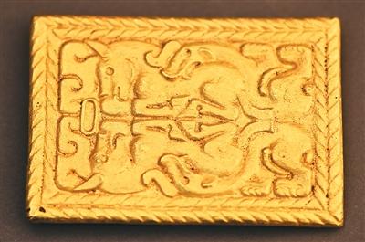 戰(zhàn)國時(shí)期虎馬咬斗紋金飾牌。 內(nèi)蒙古文物考古研究院供圖