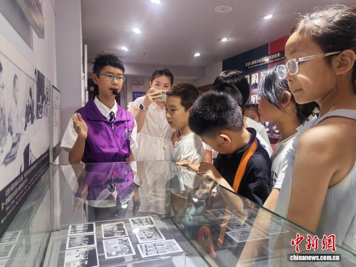 近日,在沈陽審判日本戰(zhàn)犯法庭舊址陳列館內(nèi),小講解員在展柜前為同學們講述歷史。(沈陽審判日本戰(zhàn)犯法庭舊址陳列館供圖)
