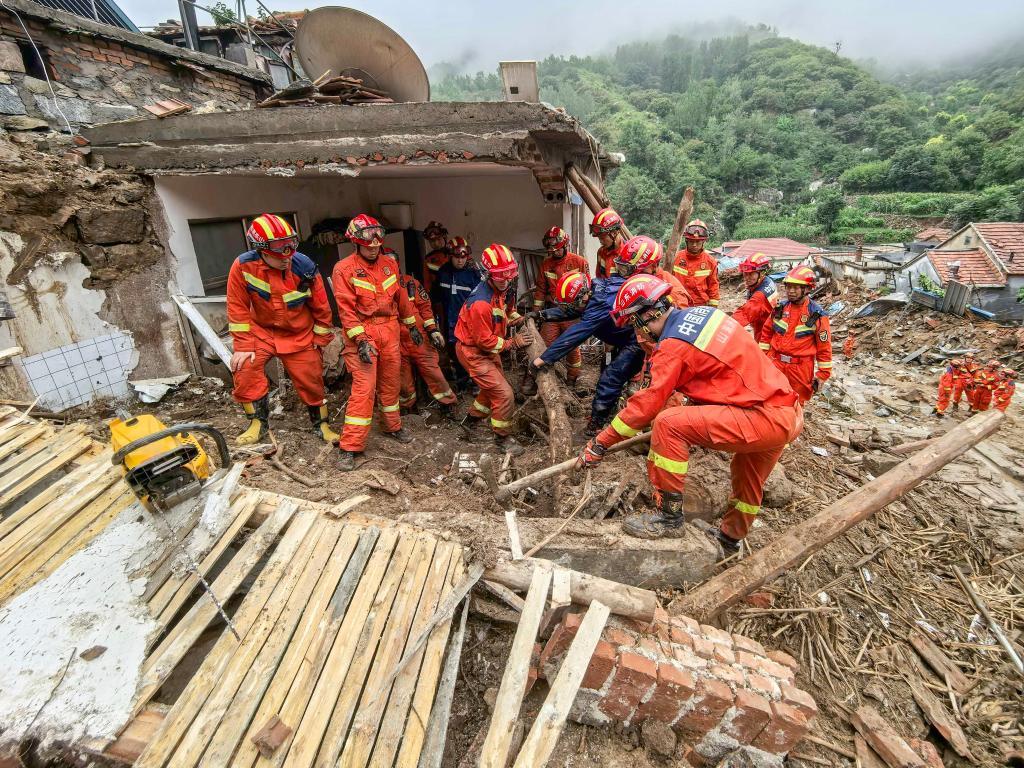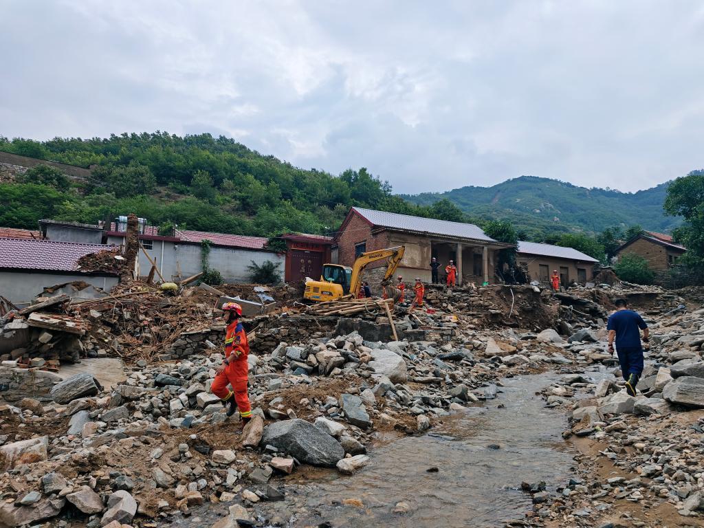在朱家峪村開展救援的消防隊員。新華社記者 邵魯文 攝