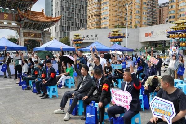 同時(shí),昆明公安在金馬碧雞坊金碧廣場開展了形式創(chuàng)新、內(nèi)容多元的“法治日”線下宣傳活動(dòng)。網(wǎng)絡(luò)安全主題視頻通過生動(dòng)形象的畫面和案例吸引群眾駐足觀看,直觀感受到網(wǎng)絡(luò)安全的重要性;在“網(wǎng)絡(luò)安全知識有獎(jiǎng)問答”環(huán)節(jié),參與者紛紛搶答,現(xiàn)場互動(dòng)氛圍熱烈;“網(wǎng)絡(luò)安全宣傳周警民集體倡議”儀式有20名現(xiàn)場群眾代表上臺(tái)宣讀網(wǎng)絡(luò)安全倡議書,共同承諾自覺維護(hù)網(wǎng)絡(luò)清朗空間;反詐中心民警現(xiàn)場普法,結(jié)合最新詐騙手法和典型案例講解識別防范技巧,提醒群眾筑牢安全防線。隨后的反詐知識有獎(jiǎng)問答再次點(diǎn)燃現(xiàn)場氣氛,群眾現(xiàn)學(xué)現(xiàn)用、對答如流,將主題日活動(dòng)推向高潮。