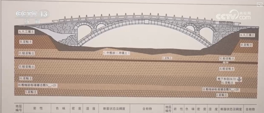 趙縣博物館館長李坤紅介紹,趙縣本地的天然土土層是輕亞粘土第四紀沖積層,每平方米承載力34噸,選址科學,1400年了,趙州橋下沉非常少,所以說它是一座千年不墜橋。