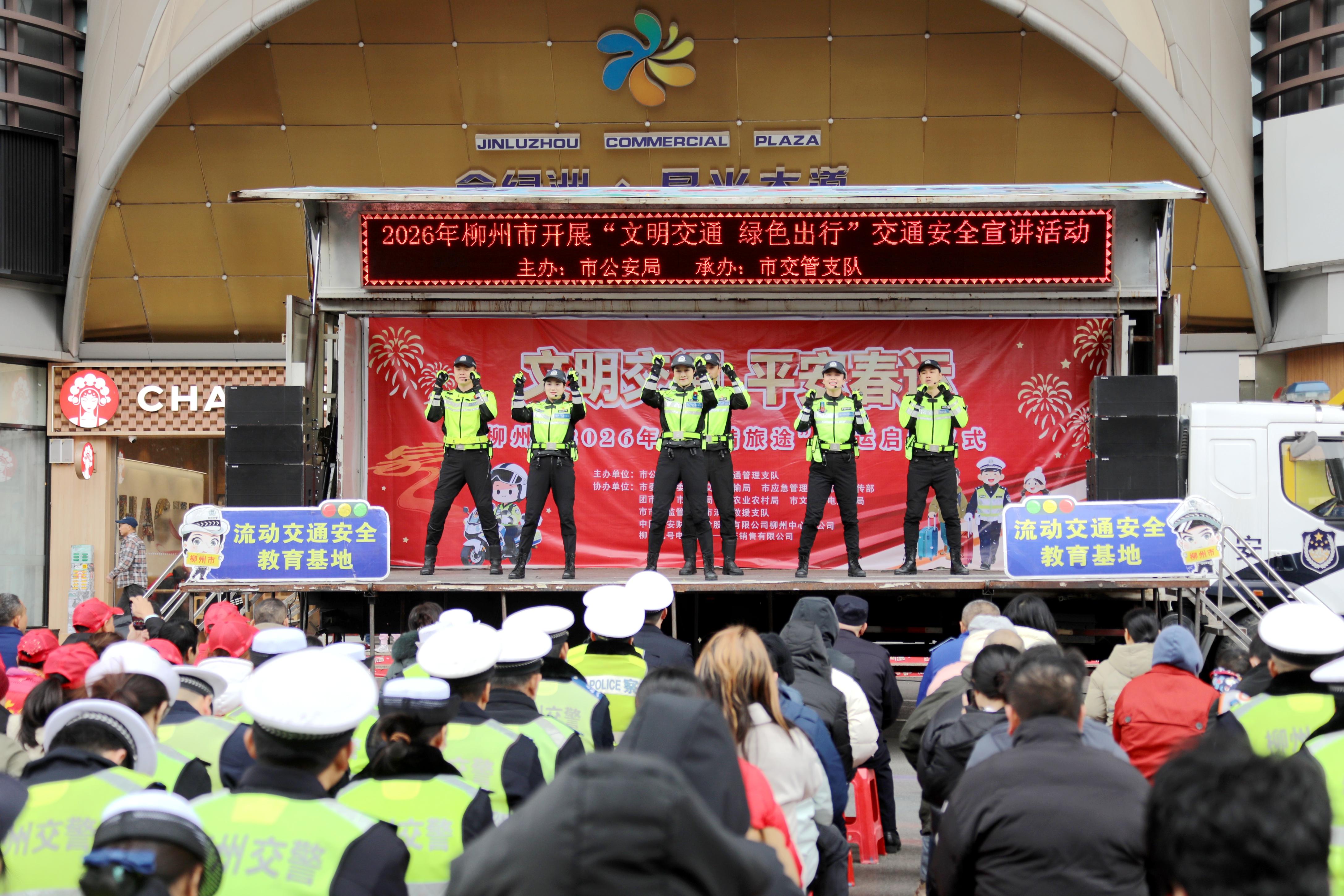 柳州市公安局交管支隊組織交通安全宣傳小分隊,通過宣講展演、互動問答等方式,向群眾傳遞交通安全知識。