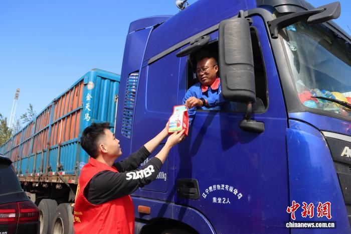 當(dāng)?shù)卦谥星锕?jié)慰問(wèn)大車(chē)司機(jī)。(資料圖)王惟 攝