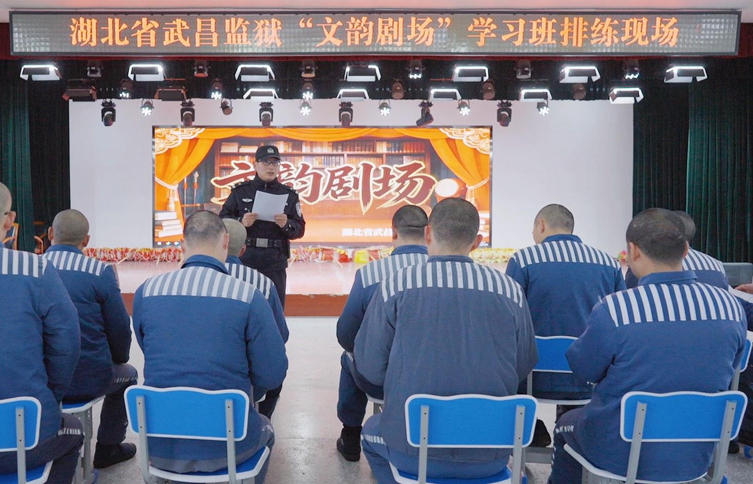 圖為湖北省武昌監(jiān)獄教育改造科副科長(zhǎng)陶洋正在“文韻劇場(chǎng)”組織罪犯排練。