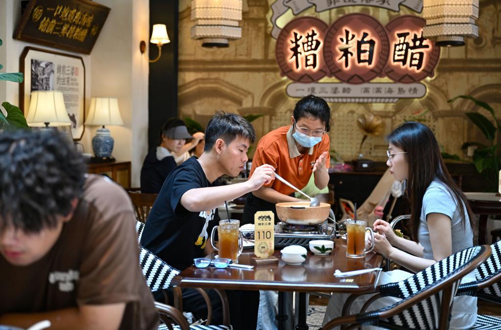 2026年1月29日,游客在文昌鋪前三婆糟粕醋店品嘗糟粕醋火鍋。新華社記者 郭程 攝
