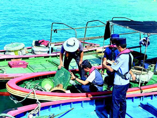圖為永興海岸派出所民警登船排查安全隱患。 本報(bào)通訊員 王垚 攝