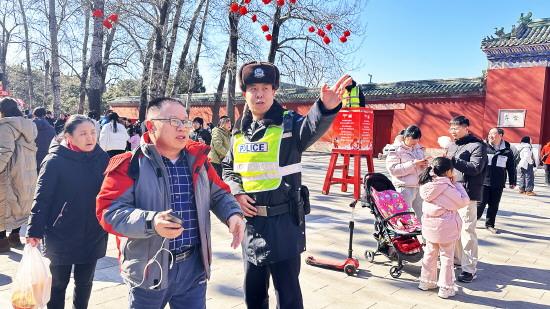 年味最濃處,警心守護(hù)時(shí)。地壇廟會(huì)游人如織,紅墻黃瓦交映間,鑼鼓聲、歡笑聲、叫賣聲匯成一幅新春盛景。而在這喜慶背后、熙攘之中,總有一抹藏藍(lán)身影穿梭往來、執(zhí)著堅(jiān)守,成為節(jié)日里最堅(jiān)實(shí)的平安底色。