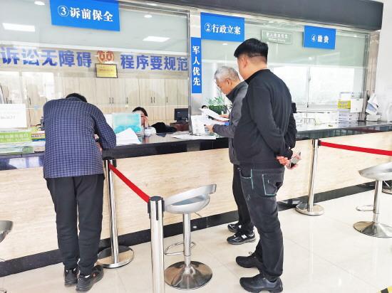 說話間,他已經(jīng)趕到訴訟服務中心窗口前,兩名中年男子手拿立案材料等在那里。這是一起建筑領域租賃糾紛,原告在提起訴訟的同時申請對被告銀行賬號進行財產(chǎn)保全。