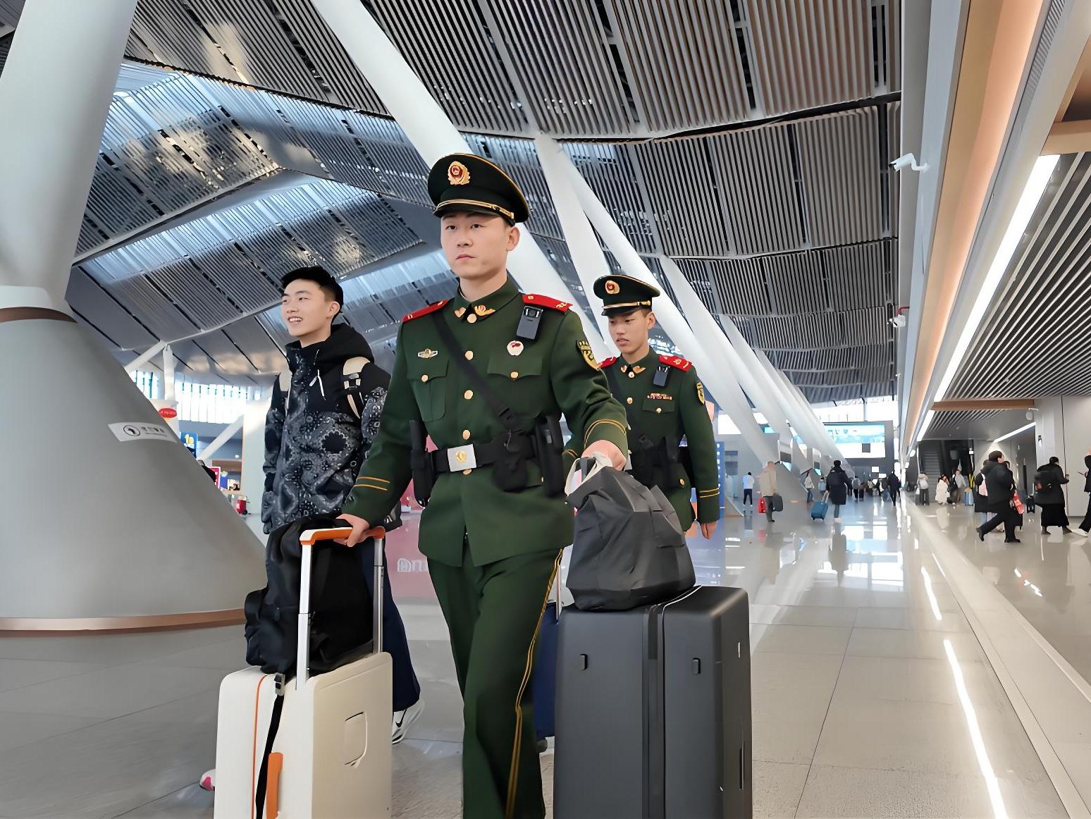 “同志,幫我看看我這趟車應該在哪等?。俊?月15日清晨,北京朝陽站內(nèi),武警北京總隊執(zhí)勤第八支隊某中隊班長廖威望帶著前往沈陽探親的劉大爺去到相應候車室。