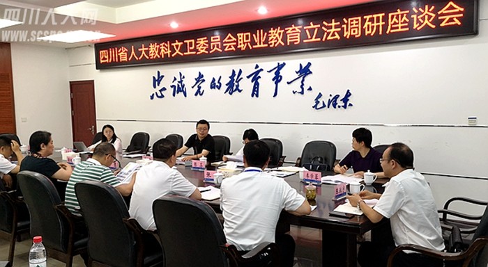 調(diào)研組與宜賓市人大、發(fā)改委、人社局、工業(yè)軍民融合局、財(cái)政局、雙城服務(wù)局及部分職業(yè)院校、產(chǎn)教融合企業(yè)代表,圍繞我省職業(yè)教育地方立法需要解決的主要問(wèn)題進(jìn)行了座談。與會(huì)同志結(jié)合各自職能和學(xué)校實(shí)際,對(duì)通過(guò)地方立法促進(jìn)職業(yè)教育進(jìn)一步發(fā)展,提出了意見(jiàn)建議。