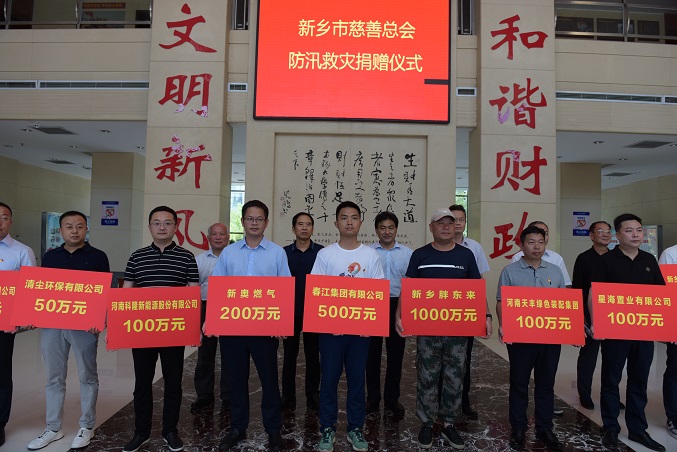 7月22日,新鄉(xiāng)市慈善總會(huì)收到這次暴雨洪災(zāi)中的第一筆捐款:裴春亮代表春江集團(tuán)捐款500萬元,助力防汛搶險(xiǎn)救災(zāi)。