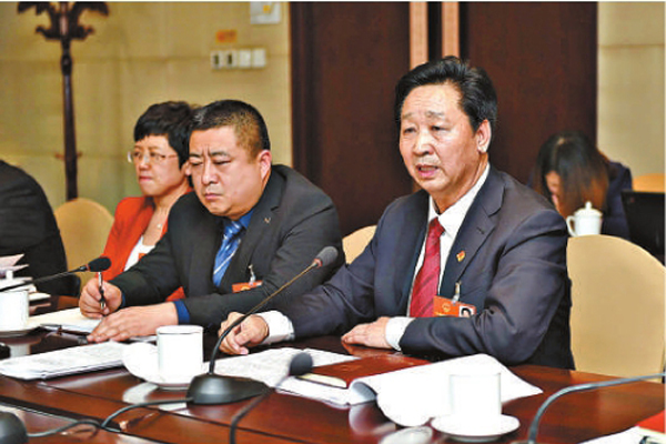 王士嶺(右一)在全國兩會上進(jìn)行小組發(fā)言