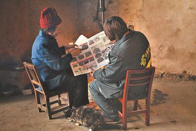遇到不識字的村民,趙明翠(右)要幫助讀信念報,有時還幫著寫回信。