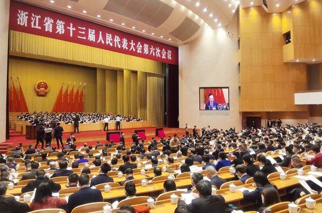 1月17日上午9時(shí),浙江省十三屆人大六次會(huì)議在杭州隆重開(kāi)幕。開(kāi)幕會(huì)由大會(huì)執(zhí)行主席、主席團(tuán)常務(wù)主席袁家軍主持。大會(huì)執(zhí)行主席和主席團(tuán)成員在主席臺(tái)就座。代省長(zhǎng)王浩作政府工作報(bào)告。浙江省人大常委會(huì)副主任趙光君作關(guān)于《浙江省公共數(shù)據(jù)條例(草案)》的說(shuō)明。