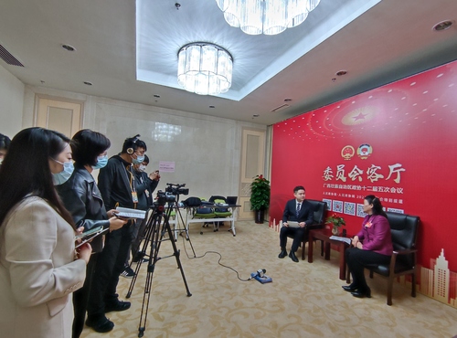 在廣西壯族自治區(qū)政協(xié)十二屆五次會(huì)議期間,人民政協(xié)報(bào)·人民政協(xié)網(wǎng)在會(huì)場(chǎng)外搭建“委員會(huì)客廳”,對(duì)委員進(jìn)行訪談。委員們紛紛通過(guò)網(wǎng)絡(luò)視頻方式發(fā)出政協(xié)好聲音。 肖亮升 攝