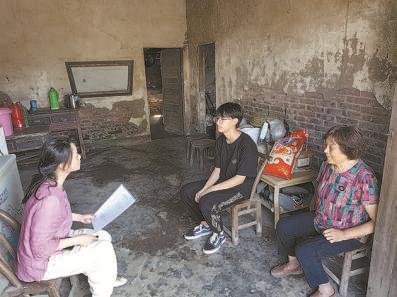 李霞(左一)到鄉(xiāng)村入戶講解血吸蟲病防治知識(shí)