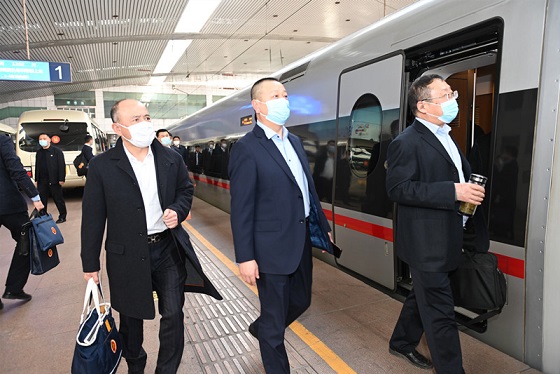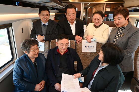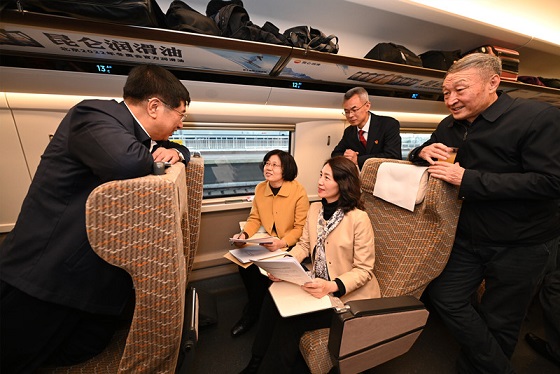 全國(guó)人大代表乘高鐵前往北京。