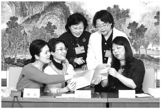 3月8日下午,全國(guó)政協(xié)十三屆五次會(huì)議舉行小組會(huì)議討論“兩高”報(bào)告。圖為無(wú)黨派人士界別小組會(huì)議散會(huì)后,謝茹、劉紅宇、甄貞、夏宇紅、蔣穎(從左至右)多位委員就司法為民、公正司法的工作理念繼續(xù)開(kāi)展討論。 郭海鵬 攝