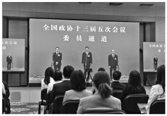 3月10日,全國政協(xié)十三屆五次會(huì)議在人民大會(huì)堂舉行閉幕會(huì)。會(huì)議開始前在人民大會(huì)堂新聞發(fā)布廳舉行第三場“委員通道”集體采訪活動(dòng)。圖為全國政協(xié)委員金鵬輝、武鋼、林凡儒(由左至右)以網(wǎng)絡(luò)視頻方式接受媒體采訪。 CFP供圖