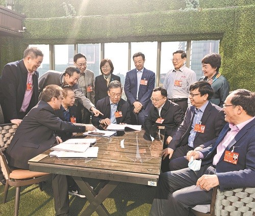 3月8日,科技界委員在小組討論會的間歇,就“兩高”報(bào)告在交流意見。 特邀委員記者 臧繼輝 攝 (作者系全國政協(xié)委員、北部戰(zhàn)區(qū)某部高級工程師 聯(lián)系人:照寧)