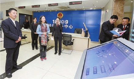 江蘇省徐州市檢察院邀請代表委員參加“走進(jìn)12309,檢察服務(wù)新體驗”活動,圖為李甦雁(左三)參觀12309檢察服務(wù)中心。