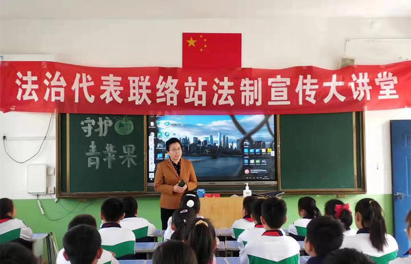 2021年10月13日,董梅玲在山城區(qū)實(shí)驗(yàn)小學(xué)開展法制宣傳大講堂活動(dòng)。