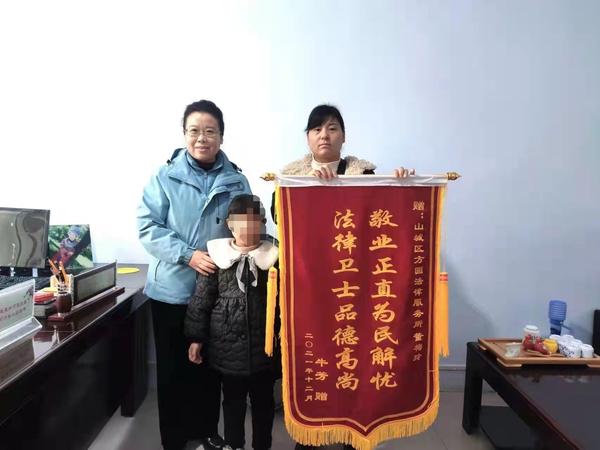 今年2月21日,受害人李某馨在家人陪同下,將一面印著“敬業(yè)正直為民解憂,法律衛(wèi)士品德高尚”的錦旗送到了董梅玲的辦公室。