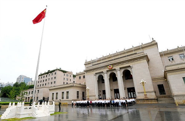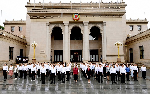 7月1日,全國(guó)政協(xié)機(jī)關(guān)在全國(guó)政協(xié)禮堂(中共八大會(huì)址)前舉行升國(guó)旗儀式,慶祝中國(guó)共產(chǎn)黨成立101周年。全國(guó)政協(xié)副主席兼秘書(shū)長(zhǎng)、機(jī)關(guān)黨組書(shū)記李斌出席。全國(guó)政協(xié)副秘書(shū)長(zhǎng)、機(jī)關(guān)黨組副書(shū)記鄒加怡主持儀式,駐會(huì)副秘書(shū)長(zhǎng)、機(jī)關(guān)黨組成員、專(zhuān)門(mén)委員會(huì)駐會(huì)副主任、有關(guān)部級(jí)領(lǐng)導(dǎo)以及機(jī)關(guān)黨員代表參加。記者 田福良 攝