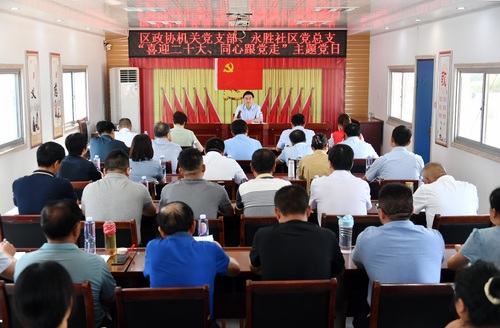 高港區(qū)永安洲鎮(zhèn)永勝社區(qū)是區(qū)政協(xié)機關(guān)的掛鉤聯(lián)系社區(qū)。為進一步加強黨建引領(lǐng),密切聯(lián)系基層黨員,7月19日上午,在永安洲鎮(zhèn)永勝社區(qū)會議室,區(qū)政協(xié)機關(guān)黨支部開展“喜迎二十大 同心跟黨走”主題黨日活動。區(qū)政協(xié)黨組副書記、副主席陳志斌,區(qū)政協(xié)黨組成員李惠平、袁斌、沈虹振以及區(qū)政協(xié)機關(guān)、永勝社區(qū)黨員代表參加活動。