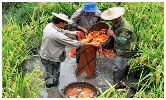 為了讓更多村民依托稻魚共生在家門口致富,多年來,青田建立農(nóng)業(yè)文化遺產(chǎn)保護(hù)與發(fā)展的多方參與機(jī)制,對(duì)全縣稻魚共生產(chǎn)品實(shí)行“五統(tǒng)一”產(chǎn)供銷模式,讓稻魚米每斤價(jià)格躍升10元以上,形成了“一畝田、百斤魚、千斤稻、萬元錢”的共富產(chǎn)業(yè)。